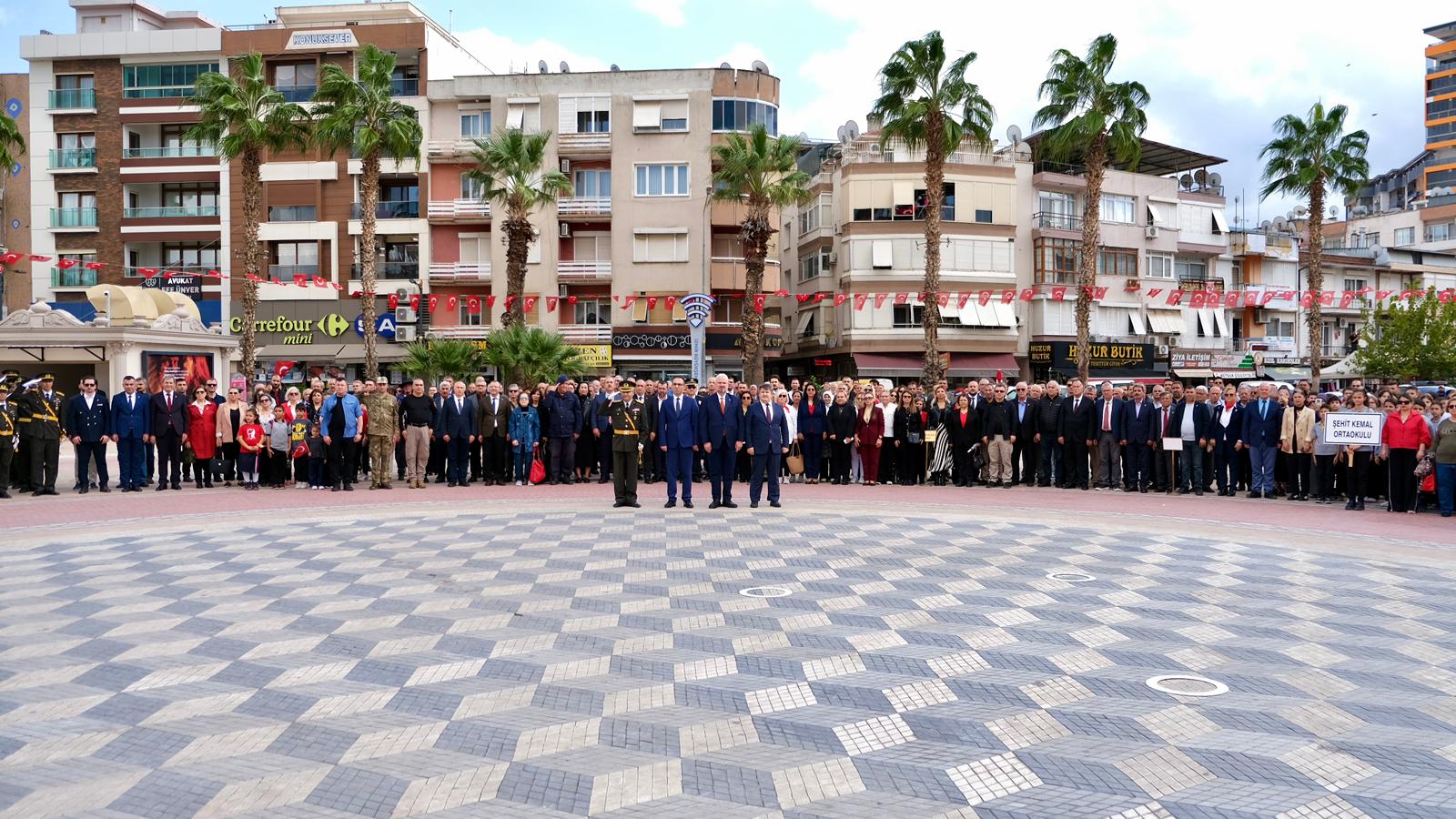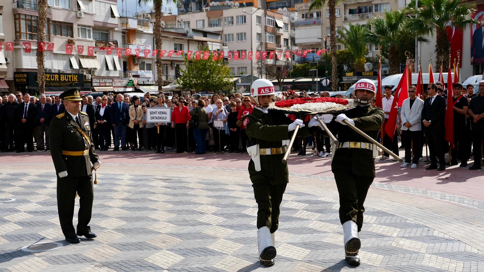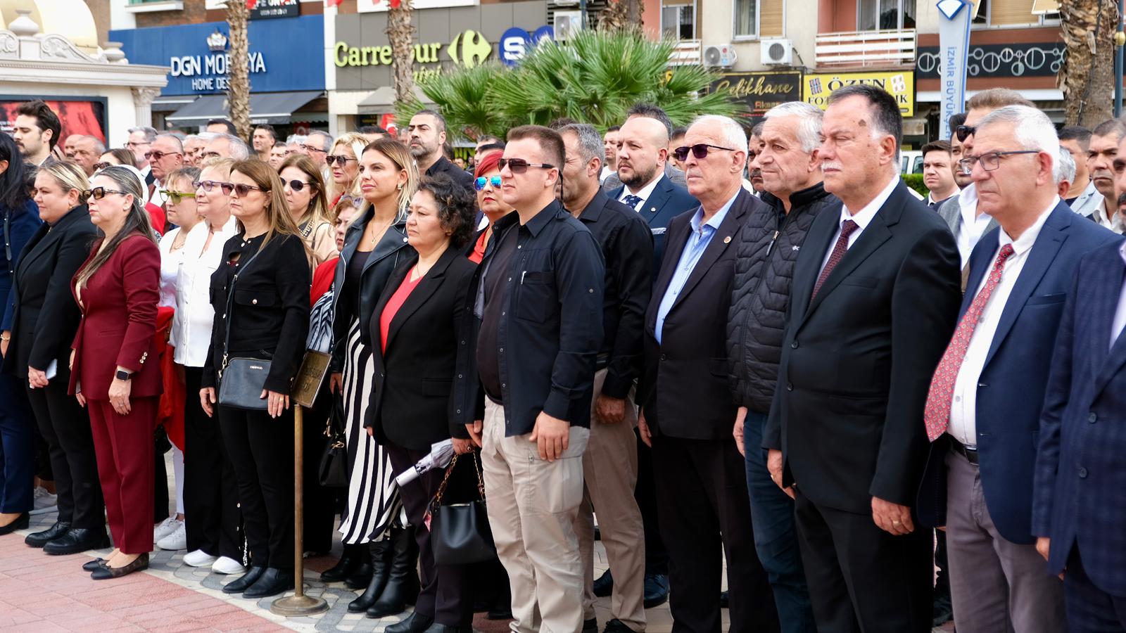 Menemen Cumhuriyet Meydanı'nda gerçekleştirilen törende, Cumhuriyetimizin kurucusu Büyük Önder Mustafa Kemal Atatürk ve kahraman şehitlerimizin anısına saygı duruşunda bulunuldu ve İstiklal Marşı okundu.