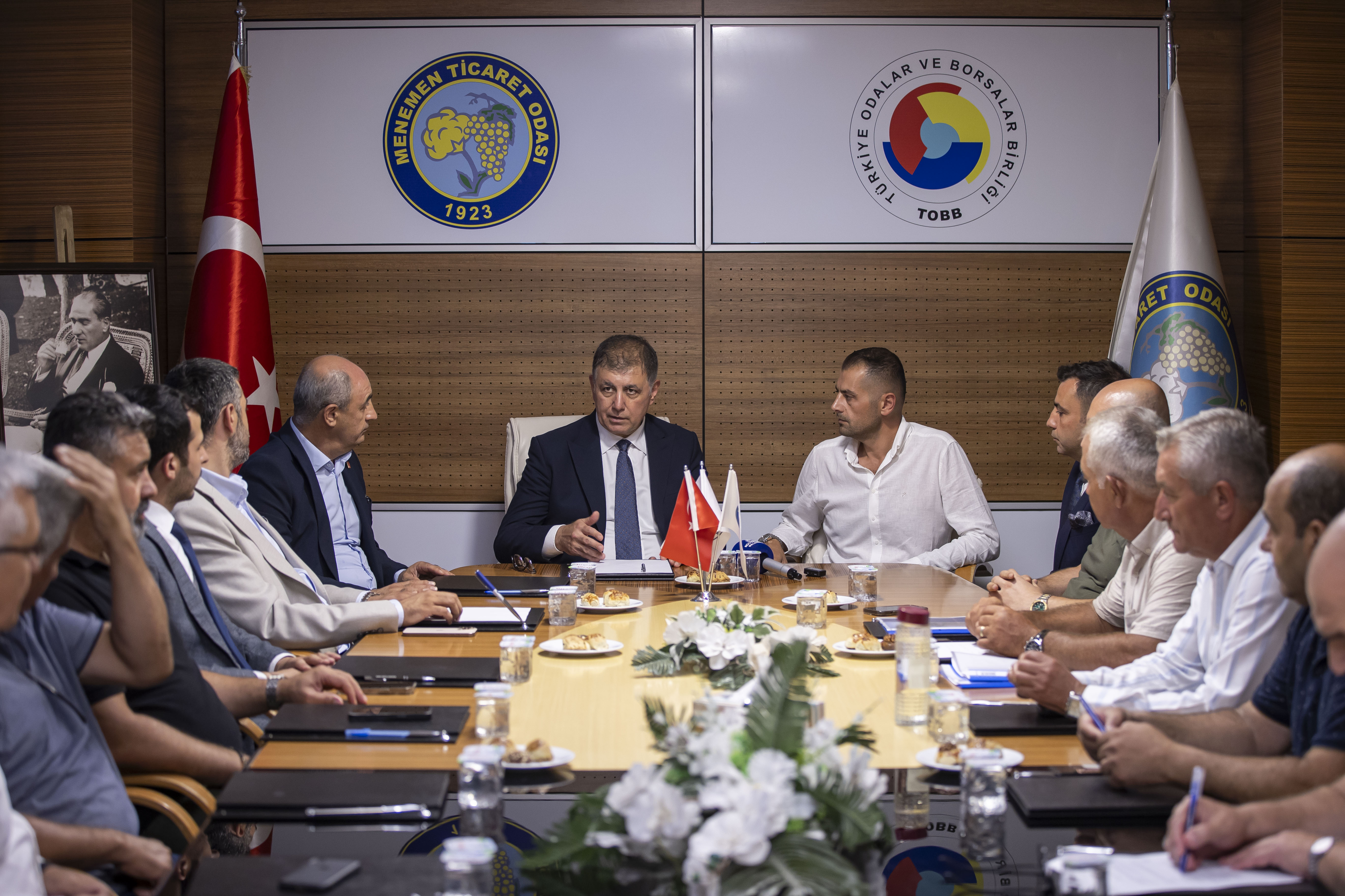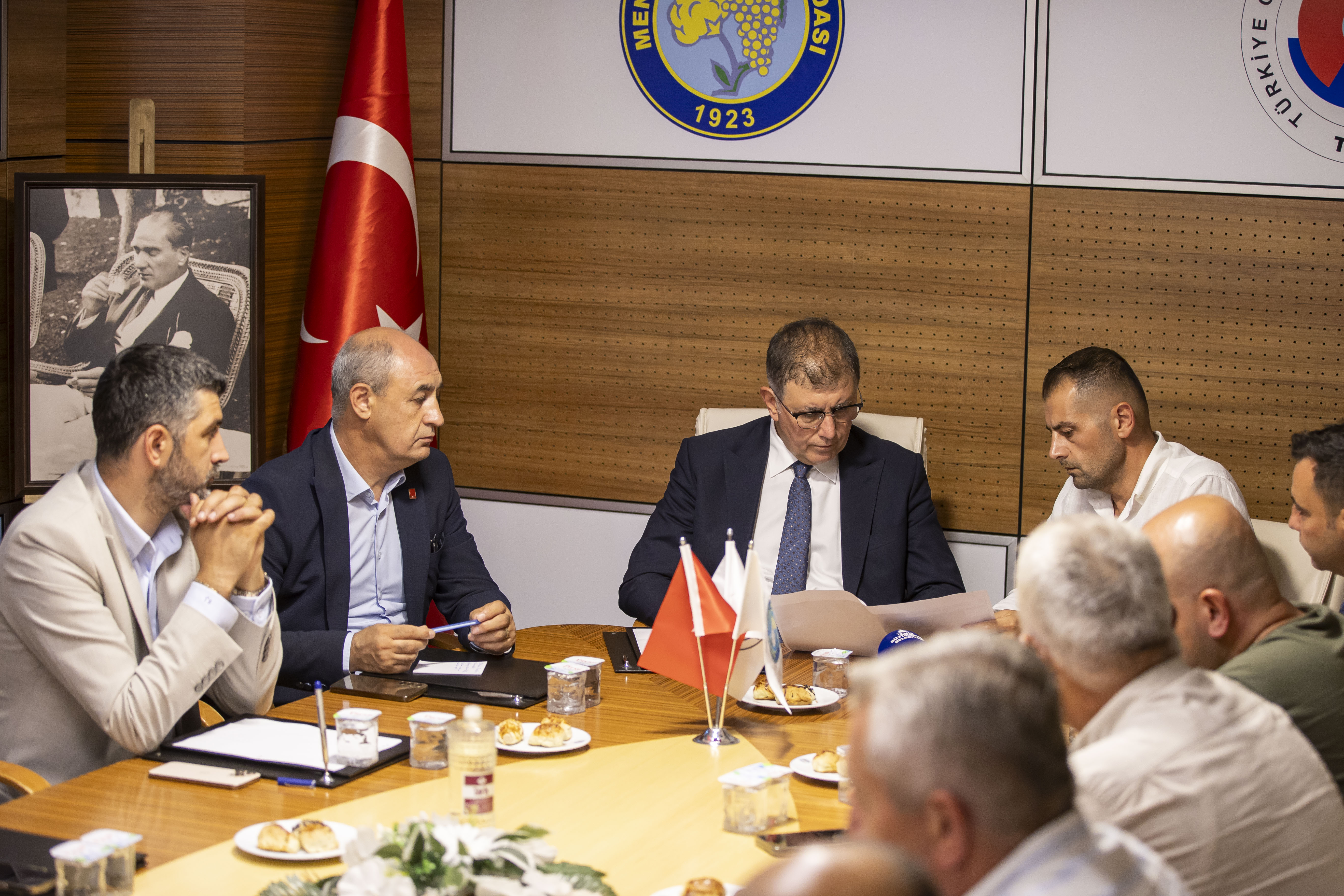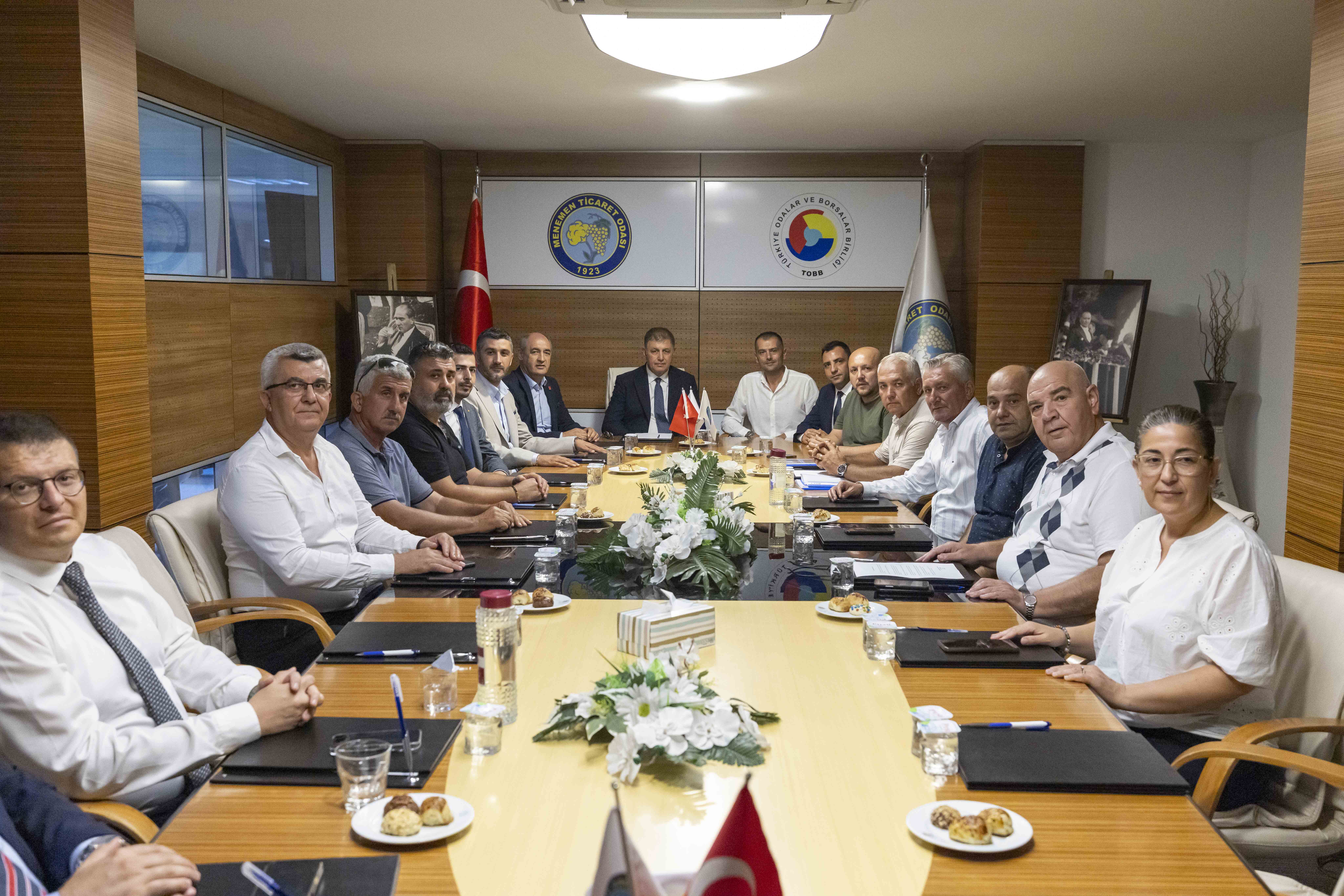 Toplantıda, yerel yönetim ile iş dünyası arasındaki iş birliği olanakları, altyapı ve yatırım projeleri, bölgenin sahip olduğu verimli tarım arazileri ile Menemen Ovası’nın potansiyeli ele alındı. Ayrıca, tarımsal sulama konusunda yaşanan su sıkıntıları ve bu alanda çözüm yolları da gündeme getirildi. İzmir genelinde yürütülen belediye projeleri ve ilçemize yönelik planlamalar hakkında da kapsamlı değerlendirmelerde bulunuldu.