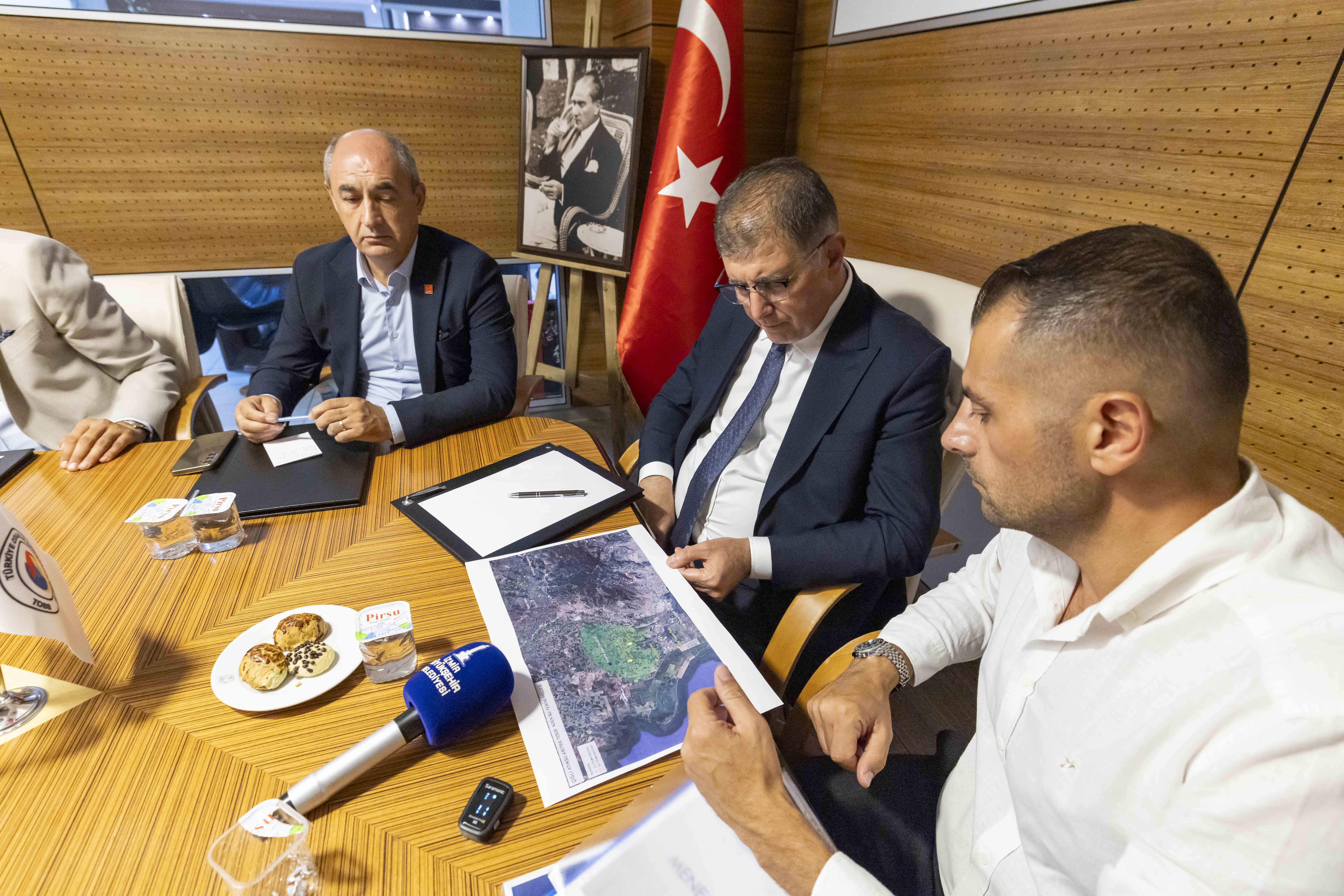 Toplantının sonunda Odamız Atatürk Arşivinden özenle seçilmiş Atatürk Portresi İzmir Büyükşehir Belediye Başkanı Sayın Cemil Tugay’a takdim edildi.