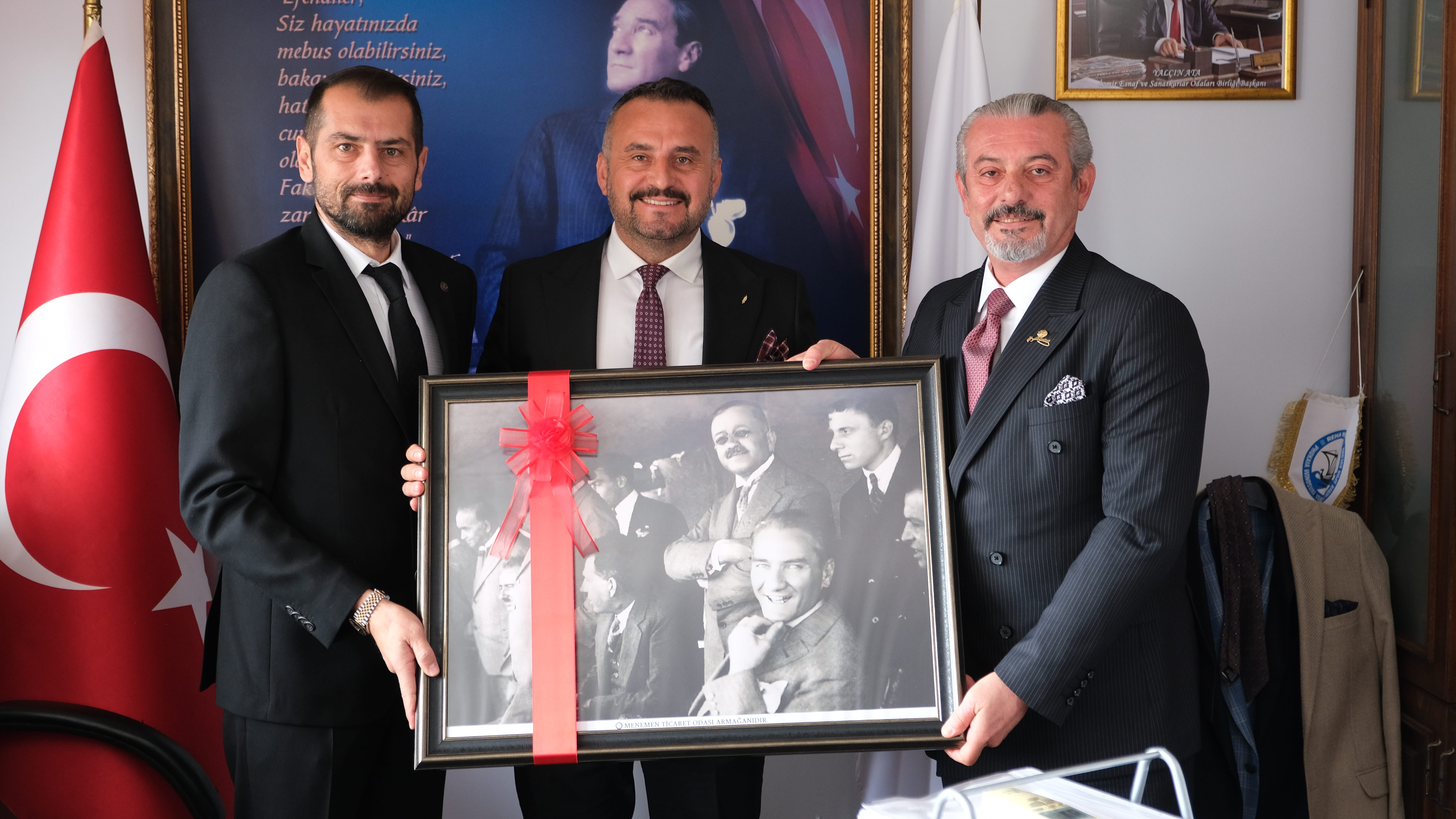 Menemen Ticaret Odası Yönetim Kurulu Başkanımız Sn. İzzet Süsoy ve Meclis Başkanımız Sn. Erdinç Cengiz, güven tazeleyerek yeniden Foça Esnaflar Odası Yönetim Kurulu Başkanlığı görevine seçilen Sn. Sedat Özdemir’i makamında ziyaret etti.