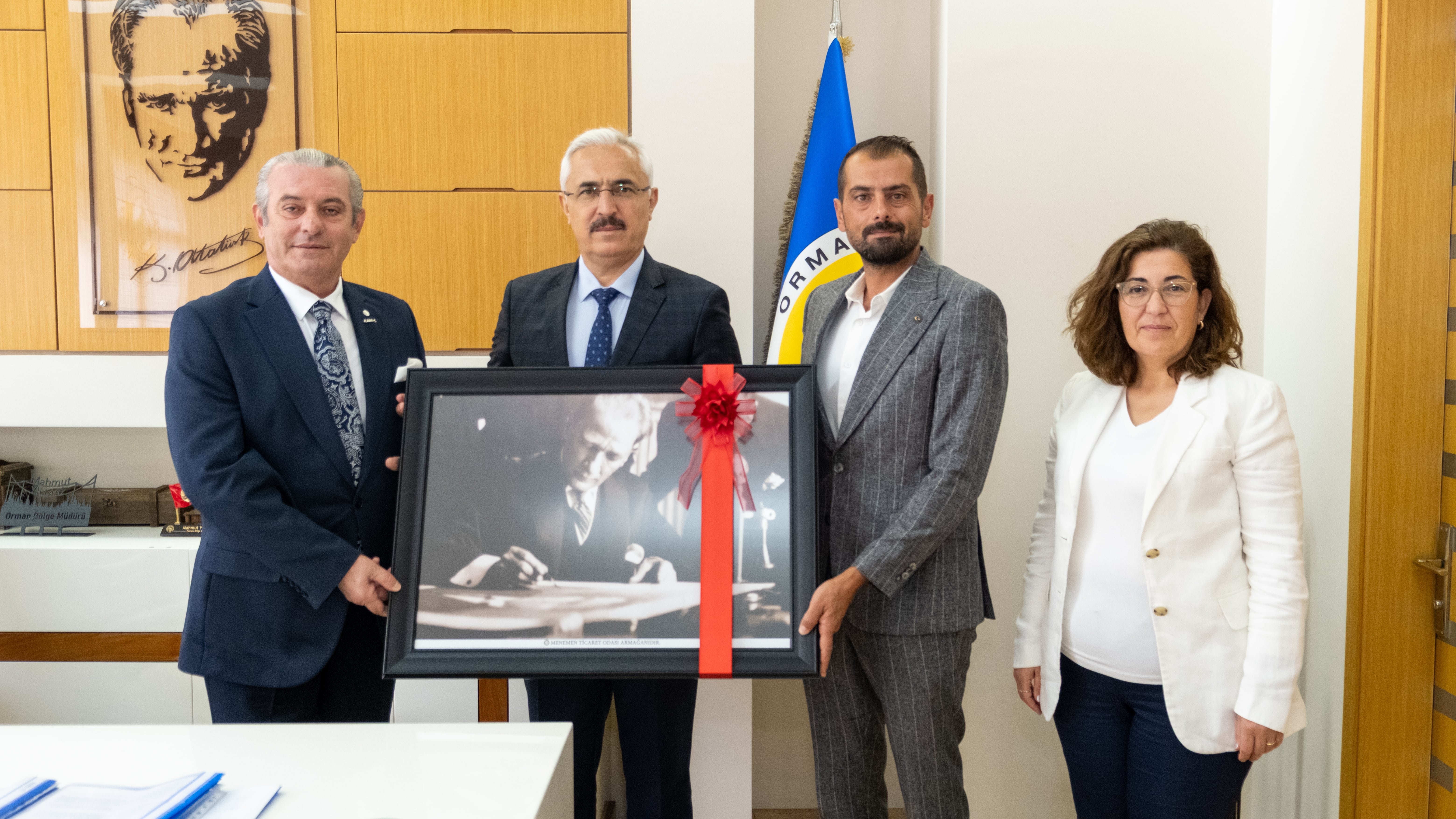 Ziyaretin sonunda Odamız Atatürk arşivlerinden özenle seçilen Atatürk Portresi Sayın Yılmaz’a takdim edildi.